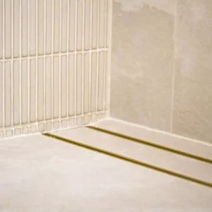 Lauxes Aluminium Matte Yellow Gold Slimline Tile Insert Grate 21 (MYGSTI21) 3000 x 100 x 21mm [Top and Bottom]