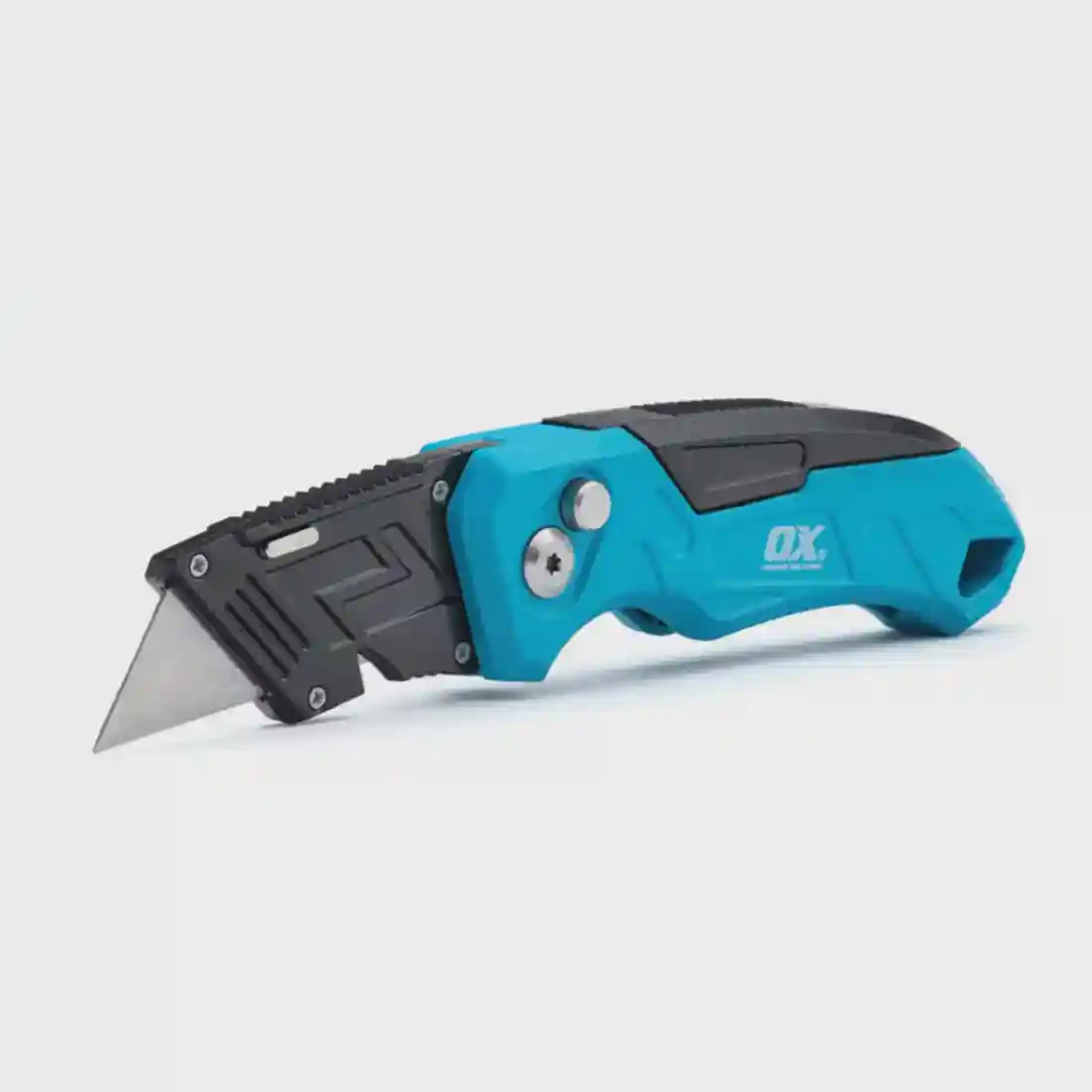 The OX Pro Heavy Duty Fixed Blade Folding Knife is crafted for versatility and efficiency, featuring an easy-change blade button with a four-position locking mechanism for precise cutting and enhanced safety. Designed for professionals, it includes a blade storage compartment with three replacement blades, ensuring extended utility on the job. The ultra-sharp steel blades deliver exceptional cutting precision, while the tool-free blade change mechanism provides quick and effortless blade replacement. Its quick-fold action and lightweight yet durable construction make it an indispensable tool for heavy-duty applications.